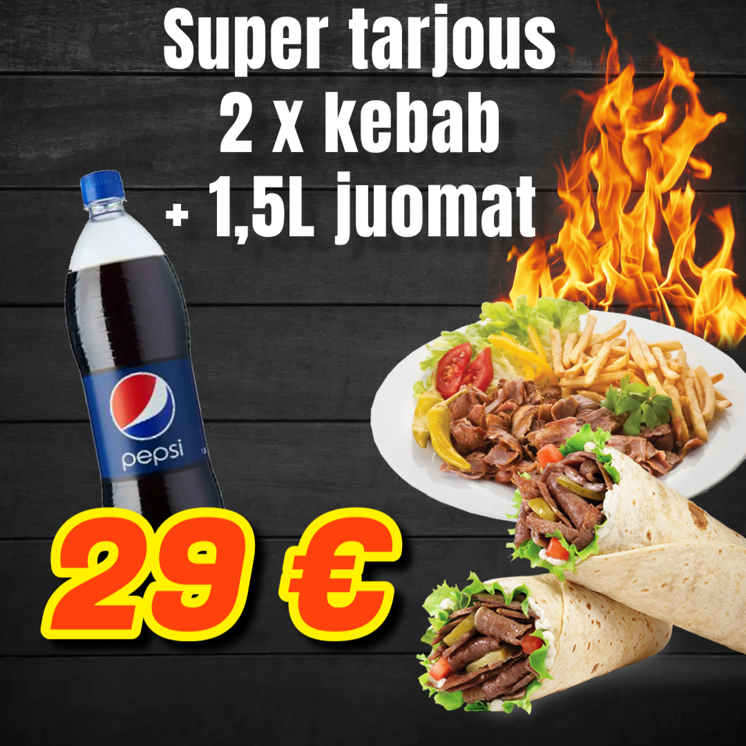 Kaikkiin rullakebabeihin sisältyy: salaatti,tomaatti,kurkku,turkinpippuri,sipuli,kastike ja majoneesi